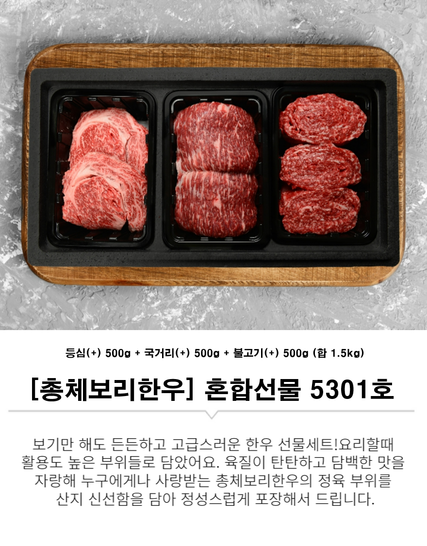 등심(1+) 500g + 국거리(1+) 500g + 불고기(1+) 500g (합 1.5kg)